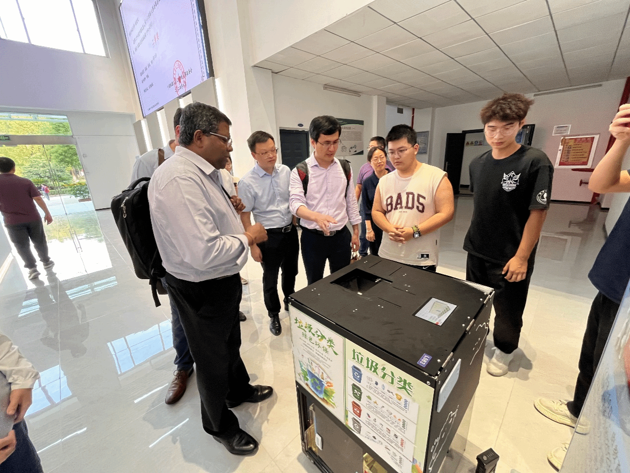 随后,Bas Baskaran一行参观了工业文化长廊、智能制造数字孪生实训室、数控实训室、3D打印实训室和机器人等实训室,了解了各实训室的教学内容,设备配置和师资力量等情况。