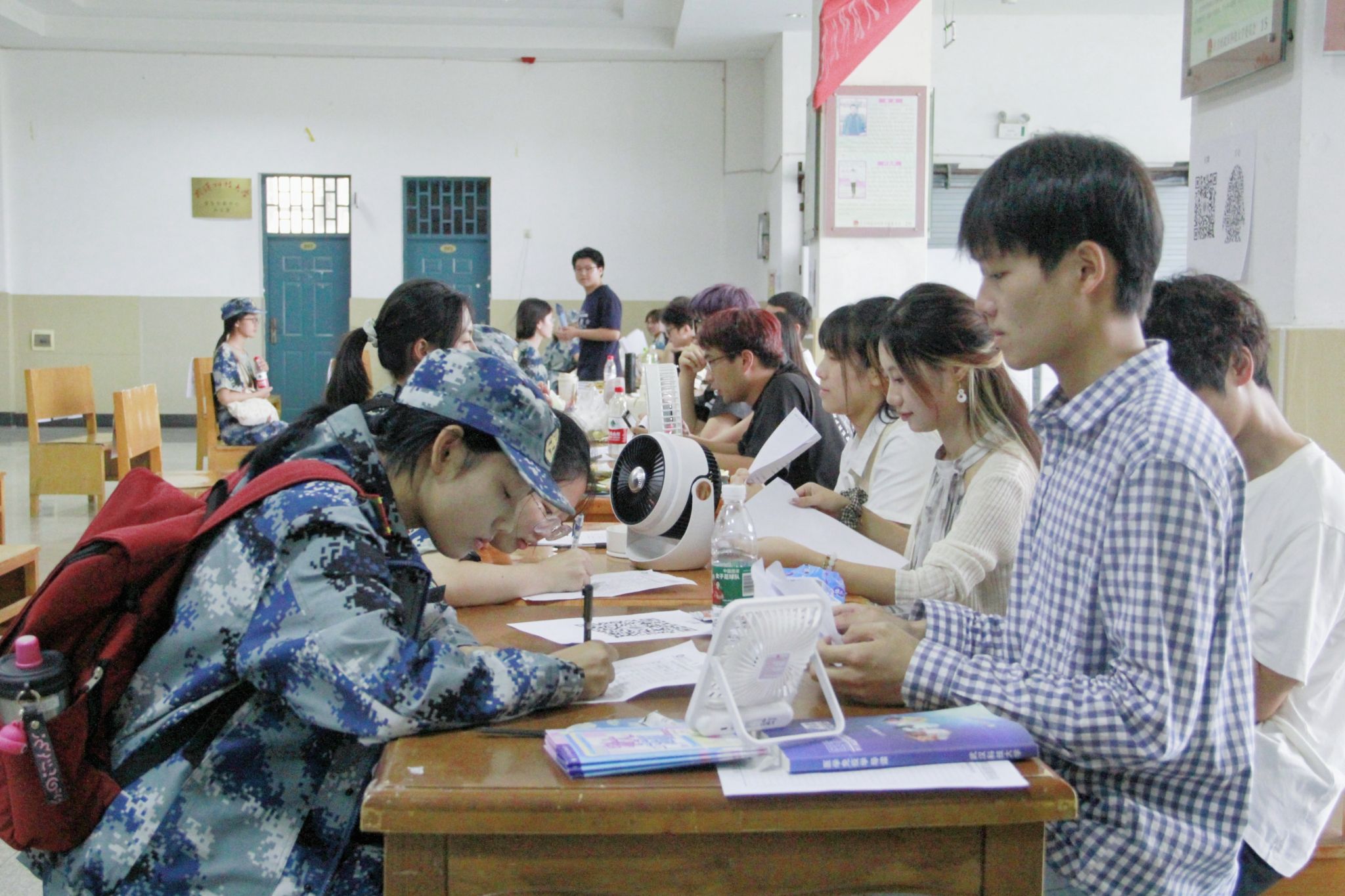 9月19日至9月20日为宣传阶段,南园食堂以及北园商业街的宣传帐篷下弥漫着浓厚的招新氛围。宣传海报上简洁大气的设计与醒目的文字,吸引着新生们前来咨询。现场气氛火热,新生们热情高涨,志愿者们手持宣传册与三折页耐心细致地向每一位驻足咨询的新生介绍总队架构、部门职能及未来展望,协助新生选择意向部门。