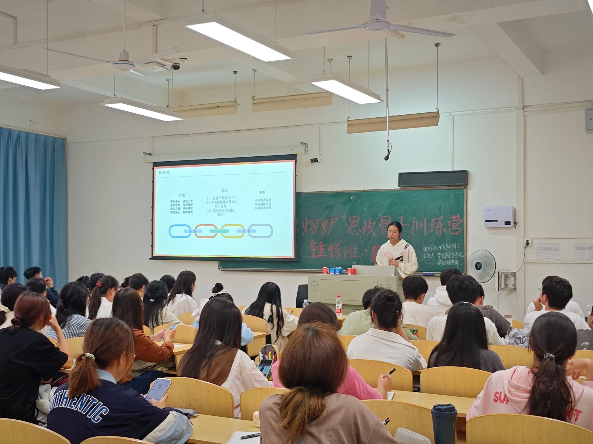 本次培训特邀365完美校报记者团编辑朱佳怡担任讲师。朱佳怡凭借丰富的实践经验与专业知识,为学员们呈现了一场别具一格的学习盛宴。培训内容围绕认识新闻、写好新闻以及新闻素养三个方面展开,涵盖了新闻稿的基本结构、导语写作、主体内容构建以及新闻稿结尾处理等方面。