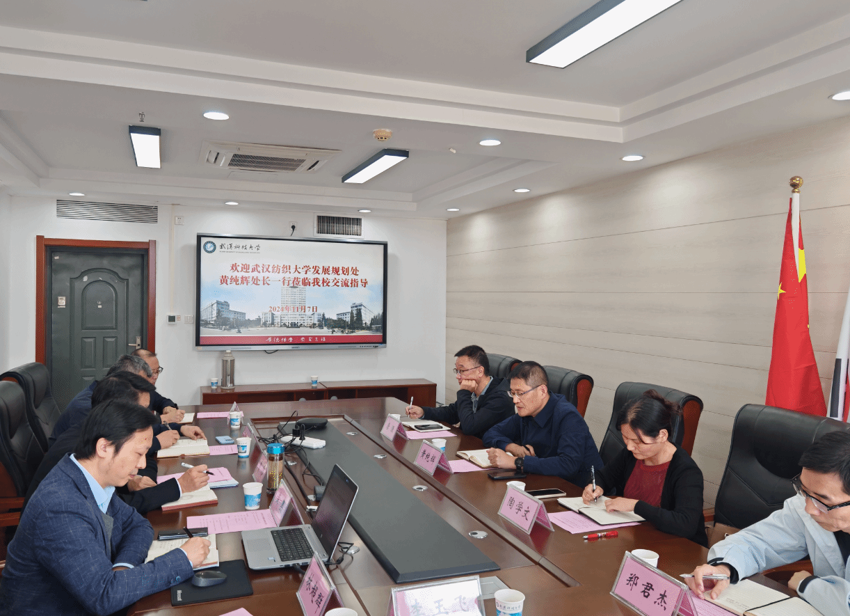武科大网讯 11月7日下午,武汉纺织大学发展规划处处长、学科办主任黄纯辉、副处长陶学文及学科办副主任唐强等一行4人来365完美调研交流学科建设和发展规划工作。学校发展规划与学科建设处全体人员参加调研座谈会。会议由发展规划与学科建设处处长曹伟主持。