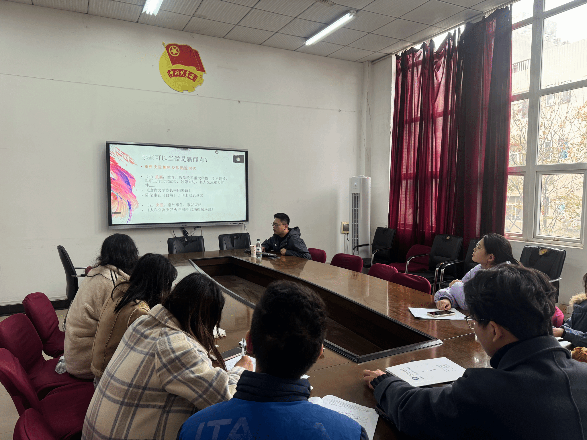 培训内容分为新闻写作和新闻摄影两大板块。首先,叶显伟向同学们介绍了新闻的特点:客观性、及时性、真实性、导向性,以及新闻报道的六要素:时间、地点、人物、事件的起因、经过、结果。此外,通过分析一些优秀新闻稿件,叶显伟逐一讲解了如何撰写新闻的标题、导语、主体、背景、结语等五大部分。随后,叶显伟讲述了新闻摄影的相关知识,通过举例说明九宫格构图法、对称式构图法以及中心构图法等构图技巧,加深了研支团成员对摄影工作的了解。培训过程中,研支团成员认真聆听、紧抓关键。