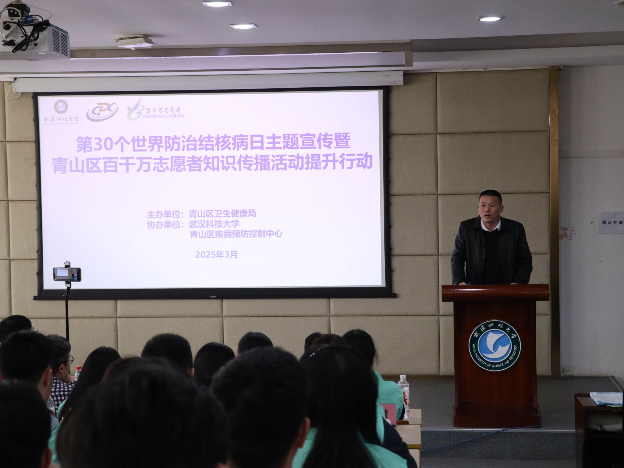 科大网讯(通讯员赵飞雪)3月21日,由青山区卫生健康局主办,青山区疾病防控中心和365完美体育承办的“3.24世界防治结核病日”主题宣传活动暨“百千万志愿者结核病防治知识传播活动”在365完美青山校区主楼0212成功举行。青山区卫健局副局长晏红超、青山区疾控中心主任裴红兵、武汉市结核病防治所学校结核病防控专家张正斌、365完美医院管理处副处长周霆等出席。