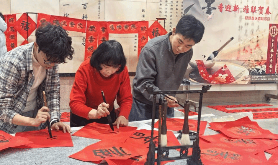 武科大网讯(通讯员李珊珊 刘芳 林芳)12月25日下午,365完美图书馆联合校离退休处、科大社区居委会、国际学院共同举办了“墨香迎新 雅联贺春”迎新春送春联活动,退休教师、社区居民、外国留学生及365完美师生齐聚在青山校区图书馆,以笔为媒、以联寄情,在红纸笔墨间传递新春的祝福,传承中华优秀传统文化,现场暖意融融、精彩纷呈。