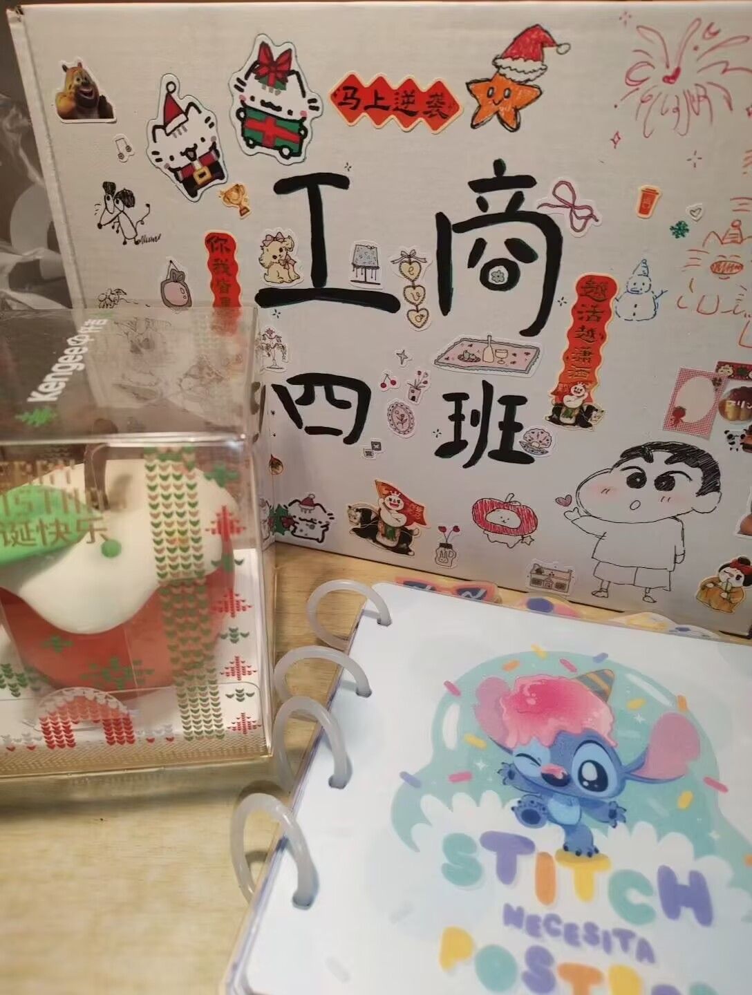 “我们写点祝福的话给班助姐姐吧”“我这里有白色飞机盒,里面用来放围巾,外面大家可以在上面涂鸦或者贴上可爱的贴纸”“同意同意”。于是,白色飞机盒就这样一个一个宿舍的传递下去,色彩也愈加丰富,于此同时,学生们积极上交手写信,表达对班助学姐这阶段陪伴的感谢以及对未来的祝福。