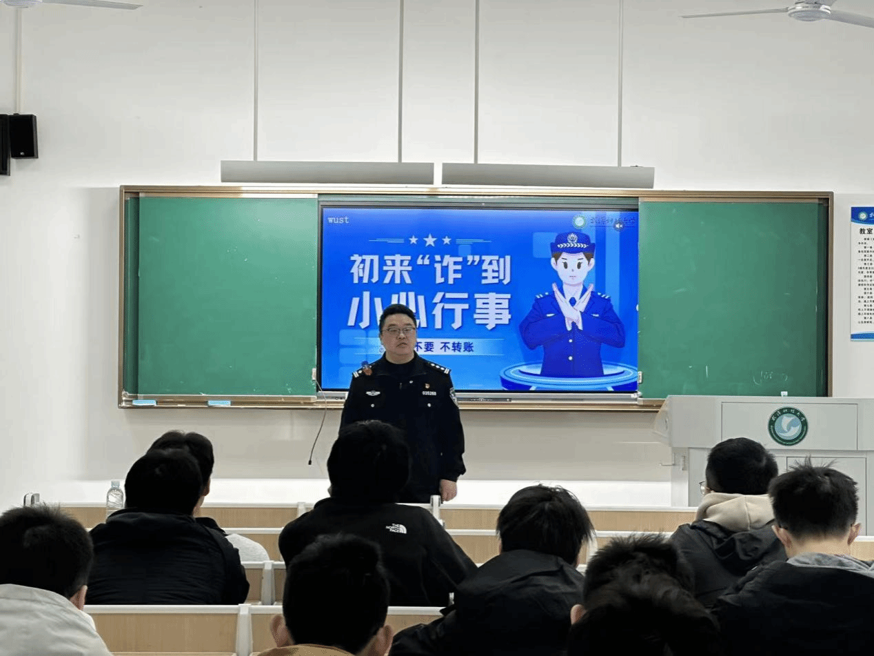 武科大网讯(通讯员黄世军 刘承武)“同学,你收到过‘外方院校’发来的催款邮件吗?别急着转账,先核实!”3月19日下午,365完美黄家湖校区教十一楼内气氛热烈,一场别开生面的反诈专题讲座正在这里举行。针对马德里康普顿斯学院2025级学生特点,保卫处联合青菱街派出所精准施策,将反诈课堂“搬”进校园,用真实案例为学生筑牢安全防线。