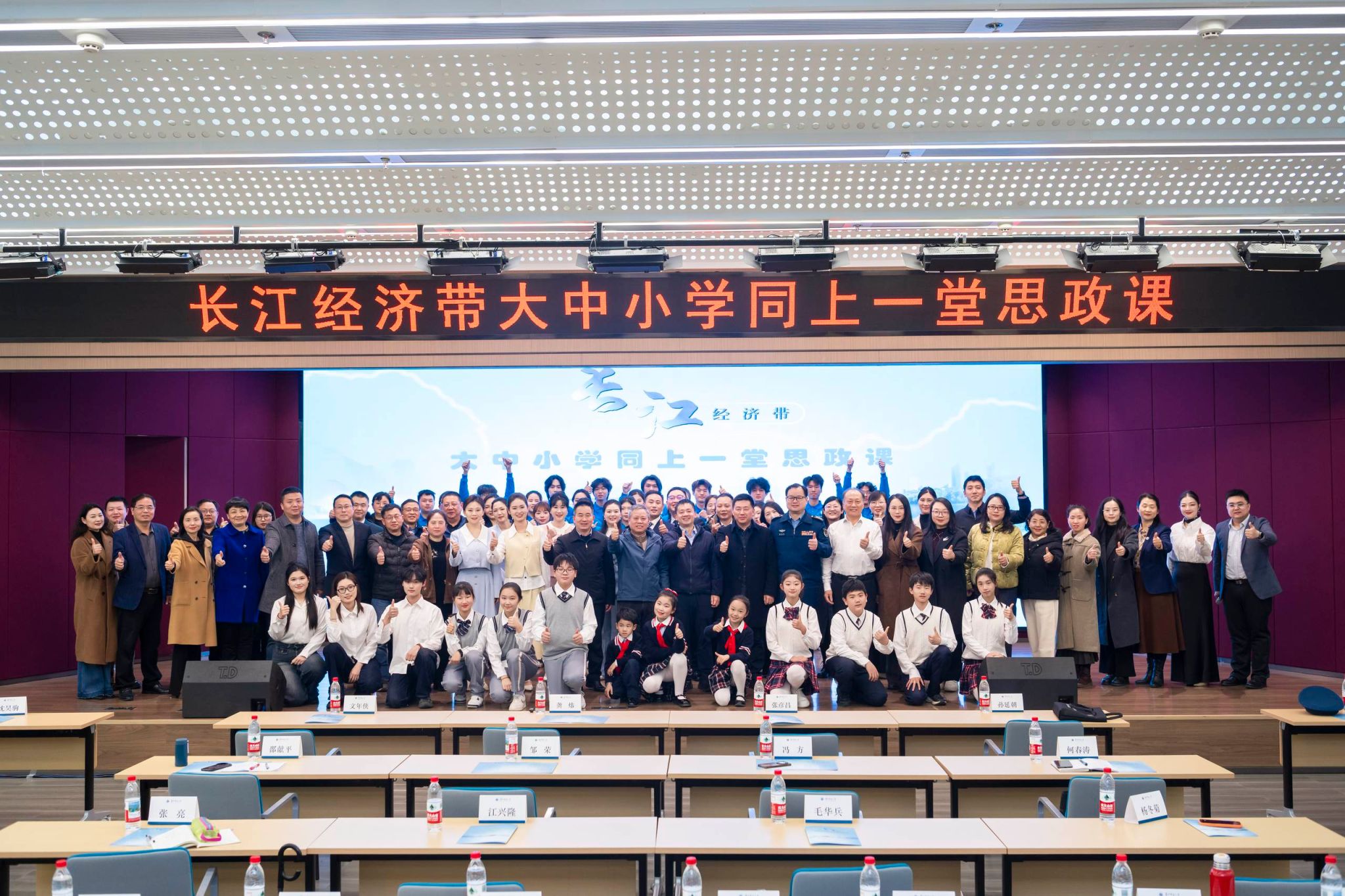 本次活动以“长江经济带”为纽带,创新构建大中小学思政课一体化教学体系。小学学段“长江之源”、初中学段“长江之能”、高中学段“长江之魂”、大学学段“长江之约”四个板块层层递进,通过跨学段协同教学,实现思政教育从“认知”到“认同”再到“践行”的有效衔接。